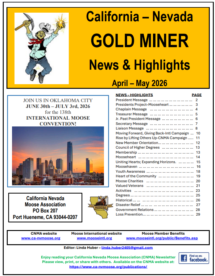 Enjoy reading your California/Nevada Moose Association Newsletter.